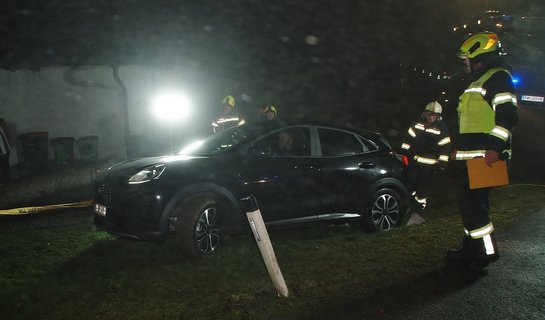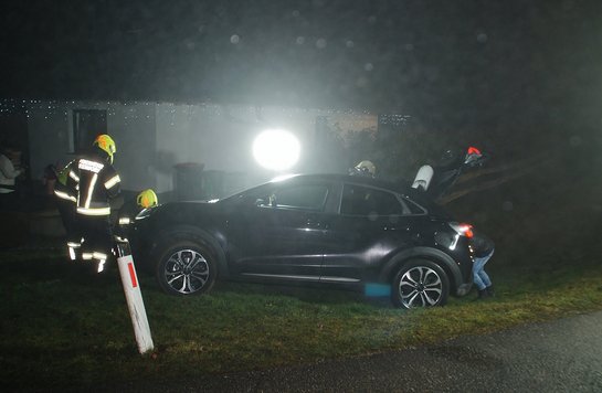 Aus ungeklärter Ursache kam das Auto beim Abbiegen von der Straße ab. Mit Unterstützung eines Radladers konnte das Fahrzeug wieder auf die Straße gebracht werden und anschließend weiterfahren. Nach rund einer Stunde konnten wir die Einsatzbereitschaft wiederherstellen.